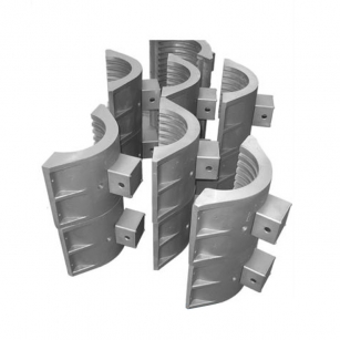Aluminum Cast Heaters can be casted into any shape and size needed, thus fully covering the part to be heated and virtually becoming the part itself. Most Cast in heat cool bands are made to customer specifications.